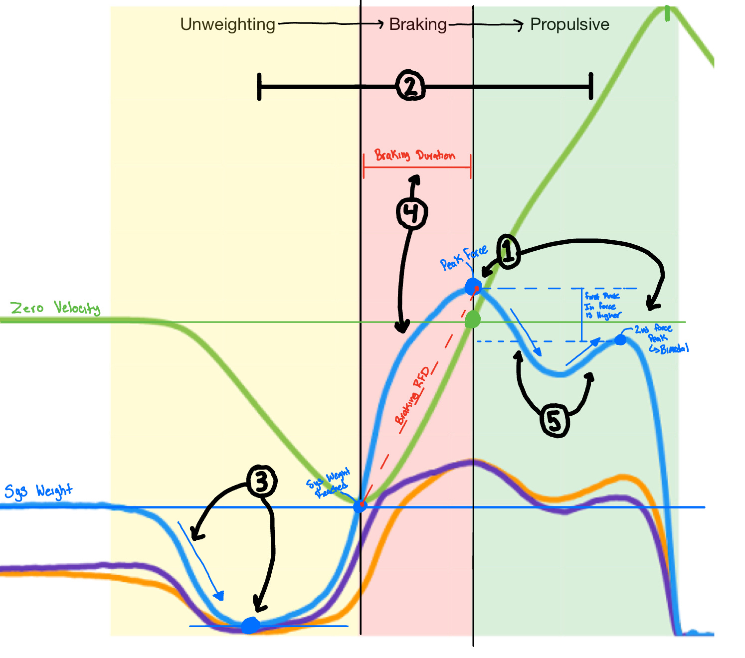 This article will focus on the three phases that occur before the athlete’s feet leave the force plate: unweighting, braking, and propulsion.